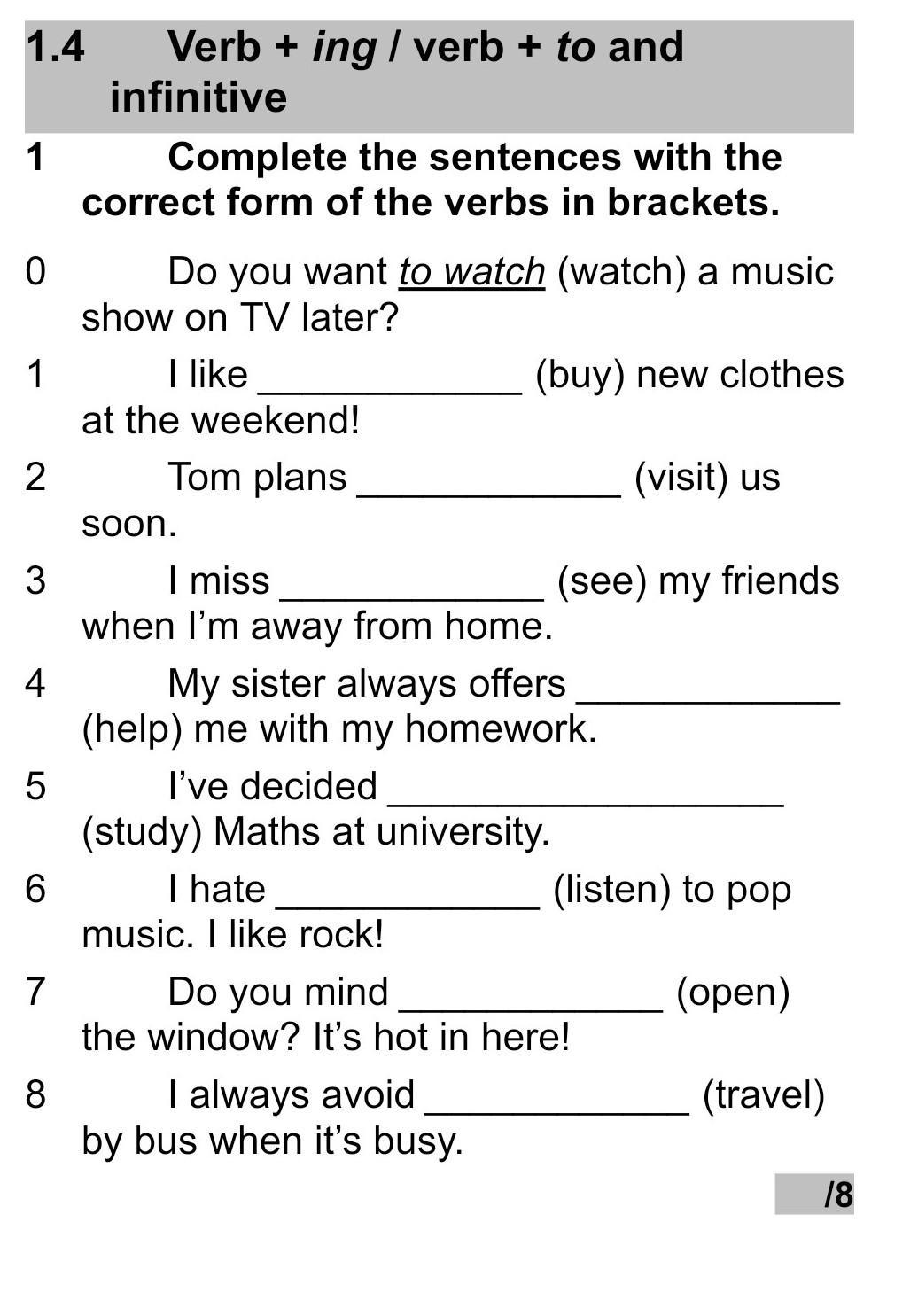 Verb + ing / verb + to and infinitive