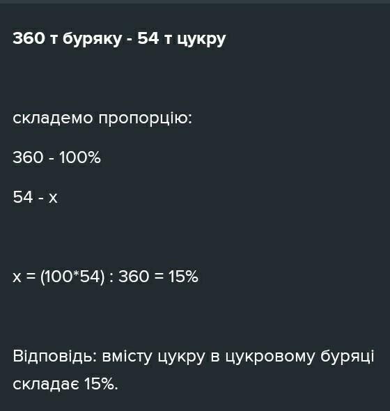 2) З 360 т цукрового буряка одержали 57,6 т цукру. Який відсоток