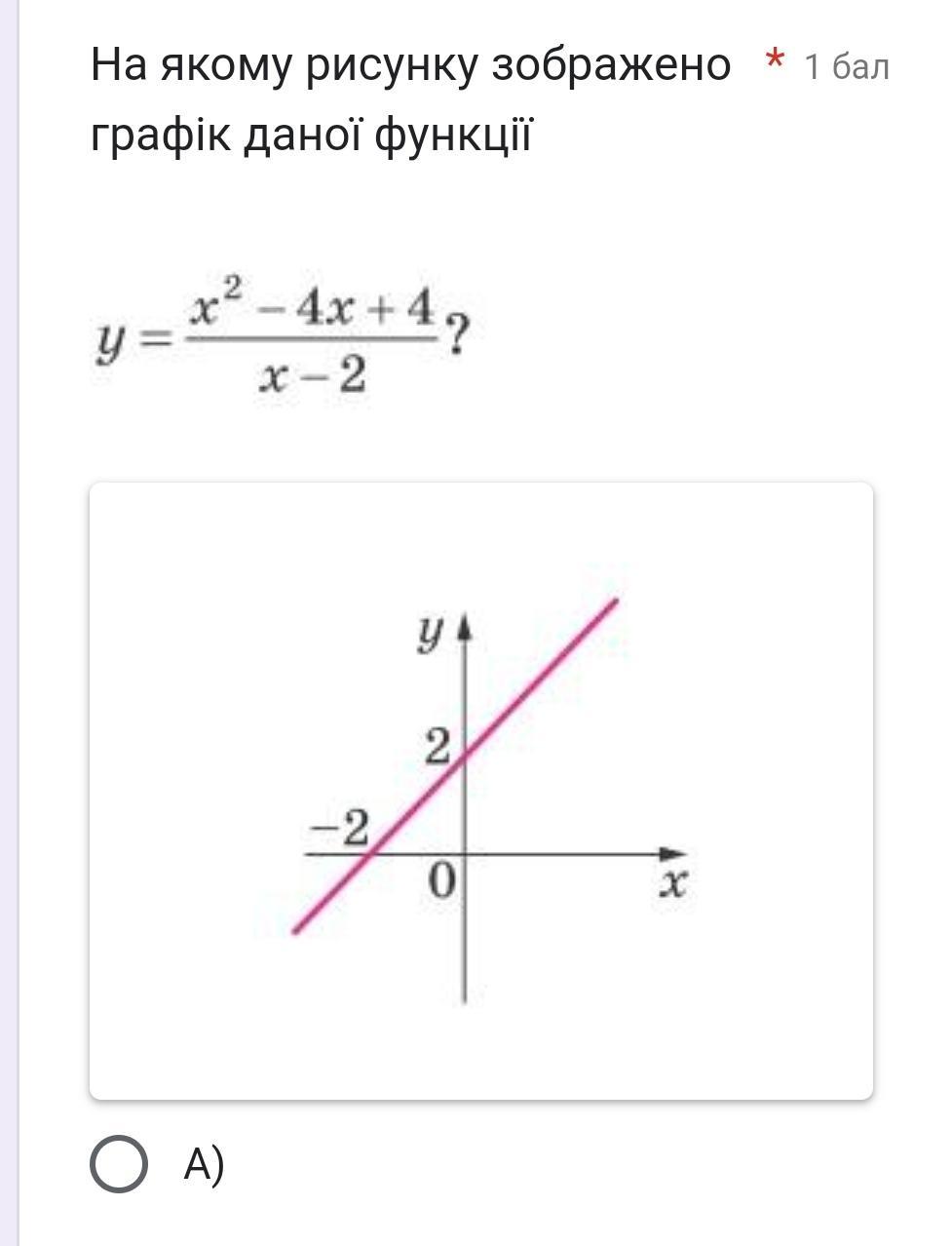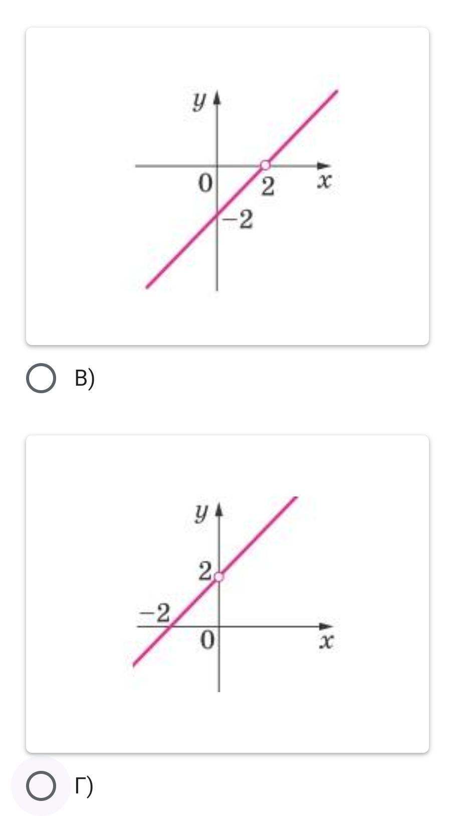 то есть точки при x = 2 - не может быть, то есть выколота. На изображении В данная точка при x = 2 помечена, а на всех остальных НЕТ.