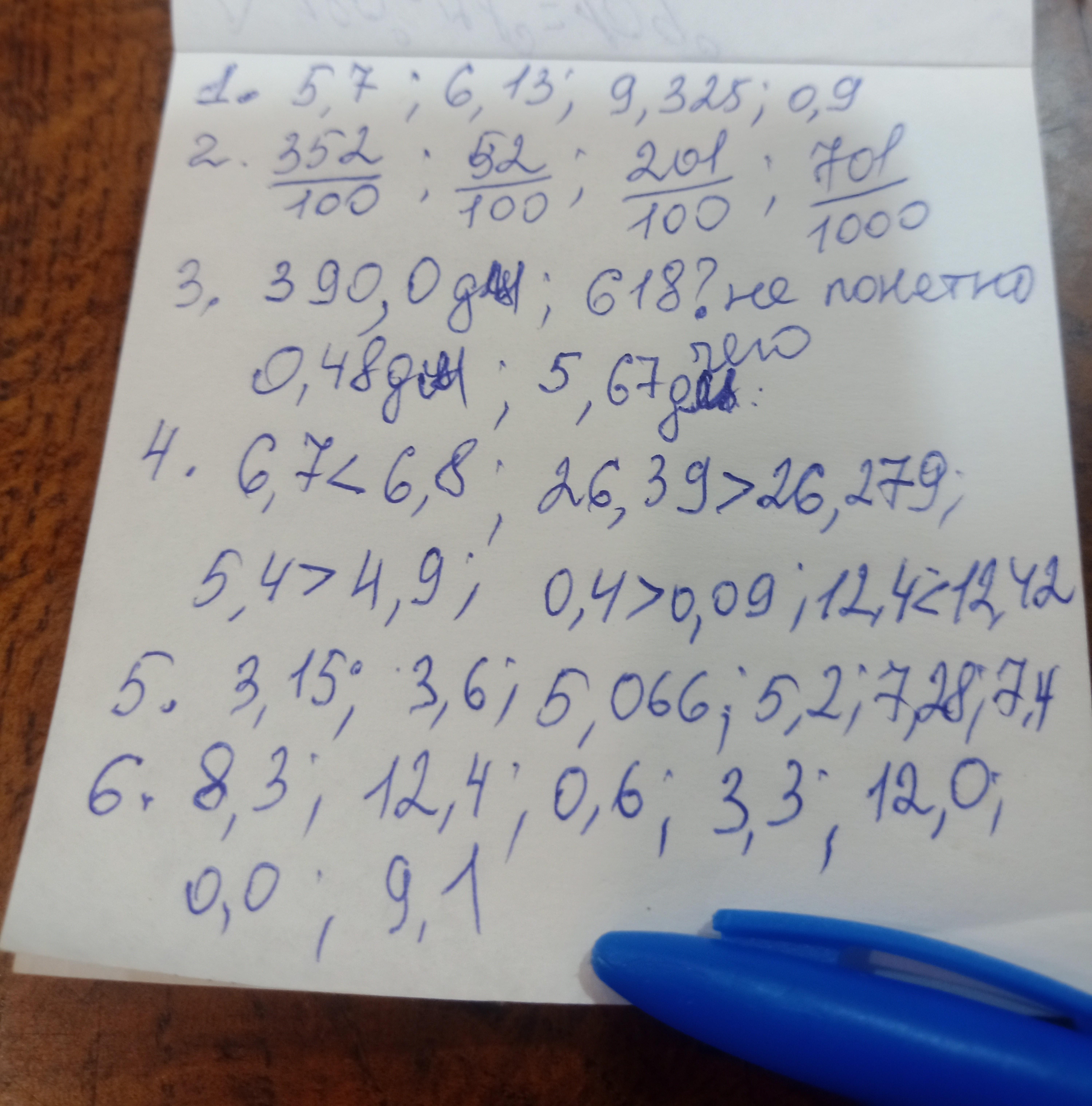 6. округлими: до десятих: 8,263 ; 12,4398 ; 0,55112 ; до десятих: 3,274 ; 11,958 ; 0,036 ; 9,097