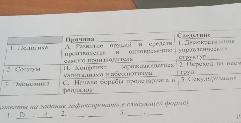 Задание №2. Установите причинно-следственные связи перехода феодализма к капиталистическим жизнедеятельности общества: отношениям [4] OT В различных сферах