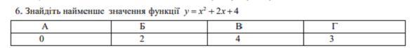 Графиком является парабола, ветви которой направлены вверх (т. к. коэффициент при x² = 1>0). Наименьшего значения функция достигает в вершине параболы.