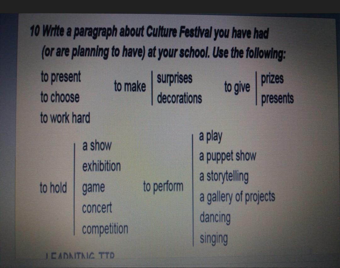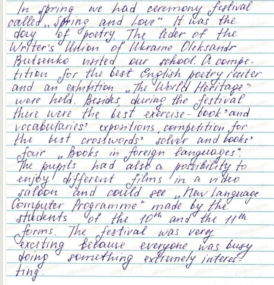 7 класс, Англійська мова. Скласти 5-6 речень про фестиваль,який проходив у школі, використовуючи слова і висловлювання у вправі.