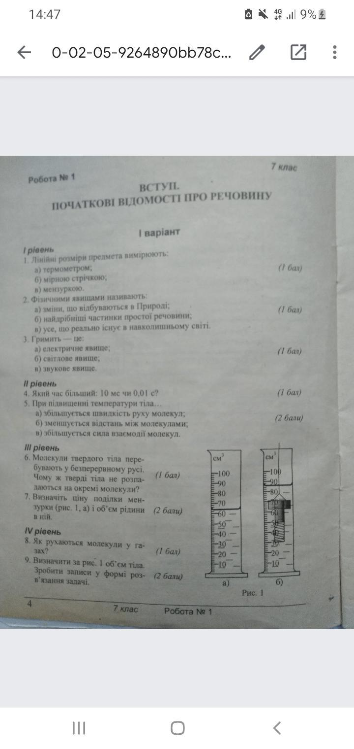 Ответ: 1 б 2.а 3в 4 однаковий час .5а 6.Молеквли на місці а атоми молекули рухаються. 7 тоже не знаю .? 8.вони рухаються одна біля одної по всьому наданому об'єму