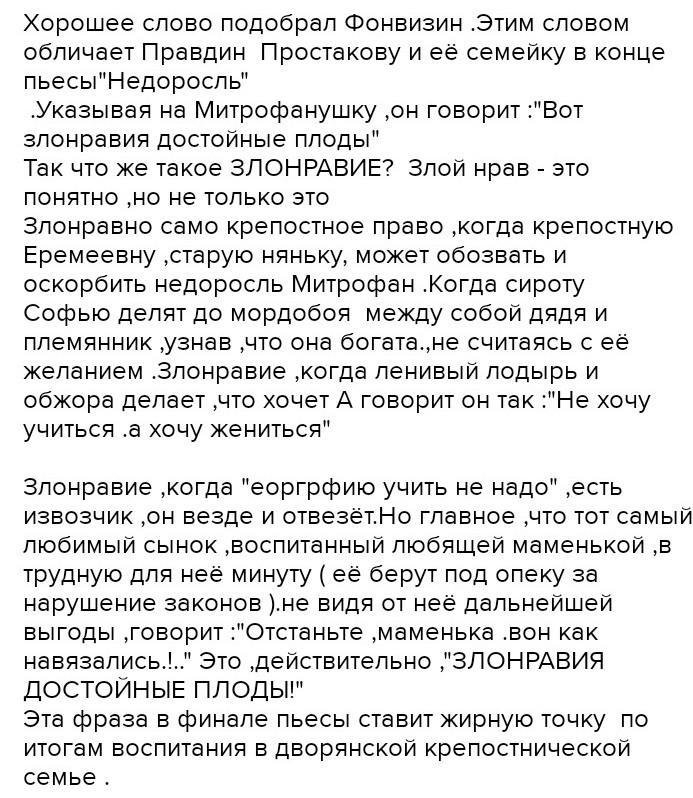ответьте на вопрос: «Вот злонравия достойные плоды!» О каких «плодах» здесь