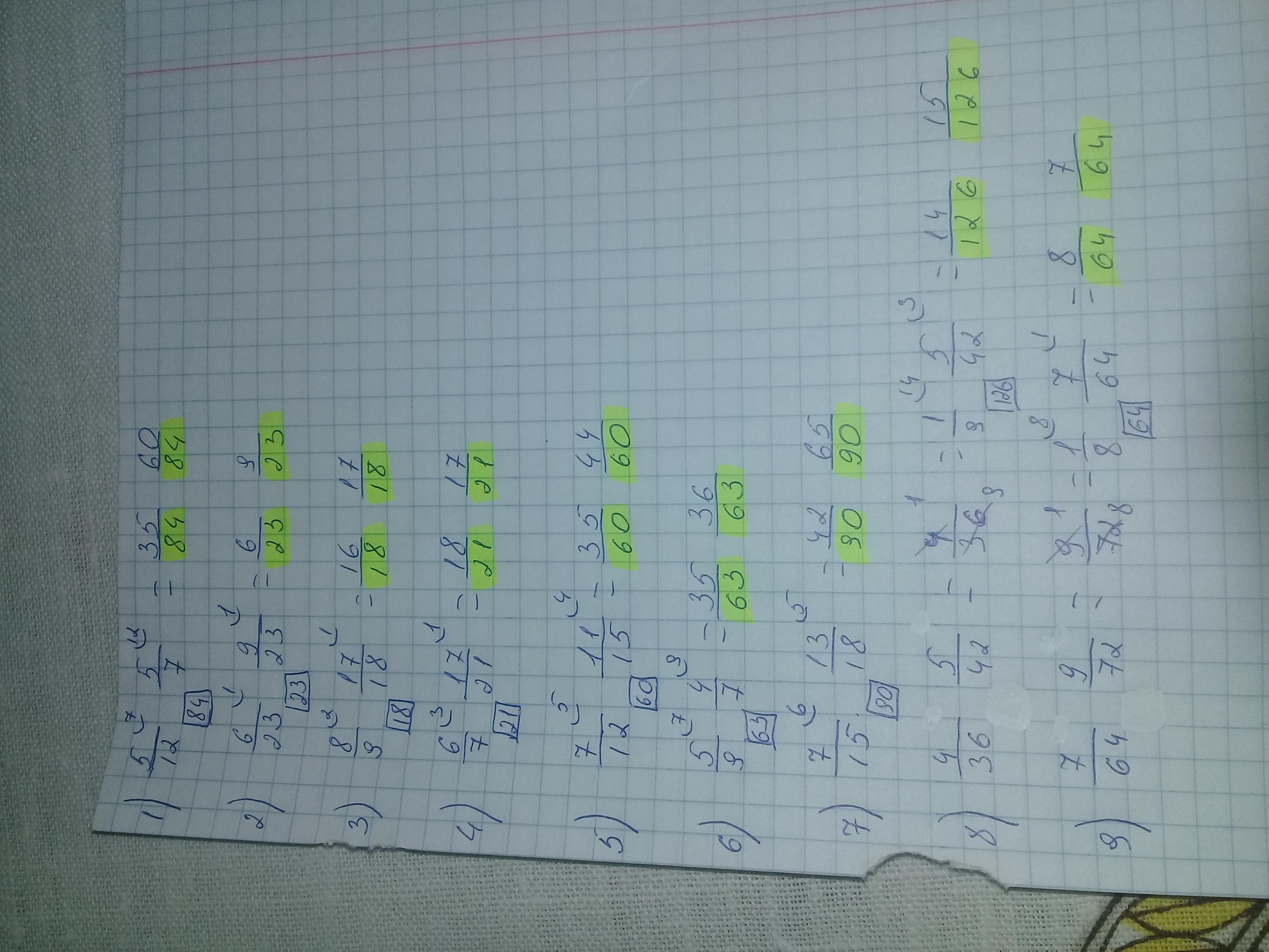 Порівняйте дроби 5/12 і 5/7; 6/23 і 9/23; 8/9 і 17/18; 6/7 і 17/21; 7/12 і 11/15; 5/9 і 4/7;