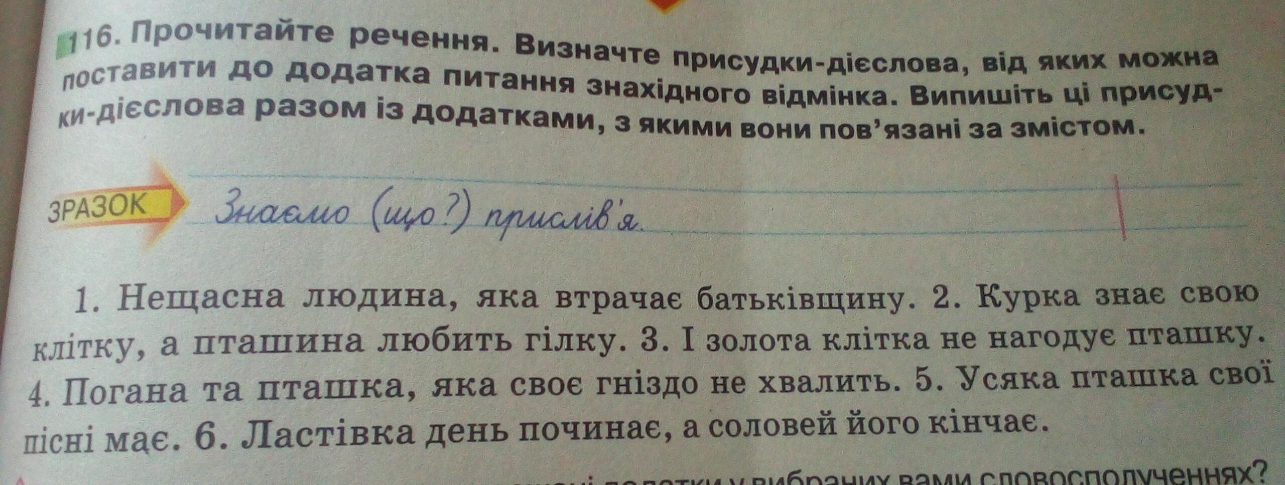усяка (хто) пташка (чиї?) свої (що?)пісні має.