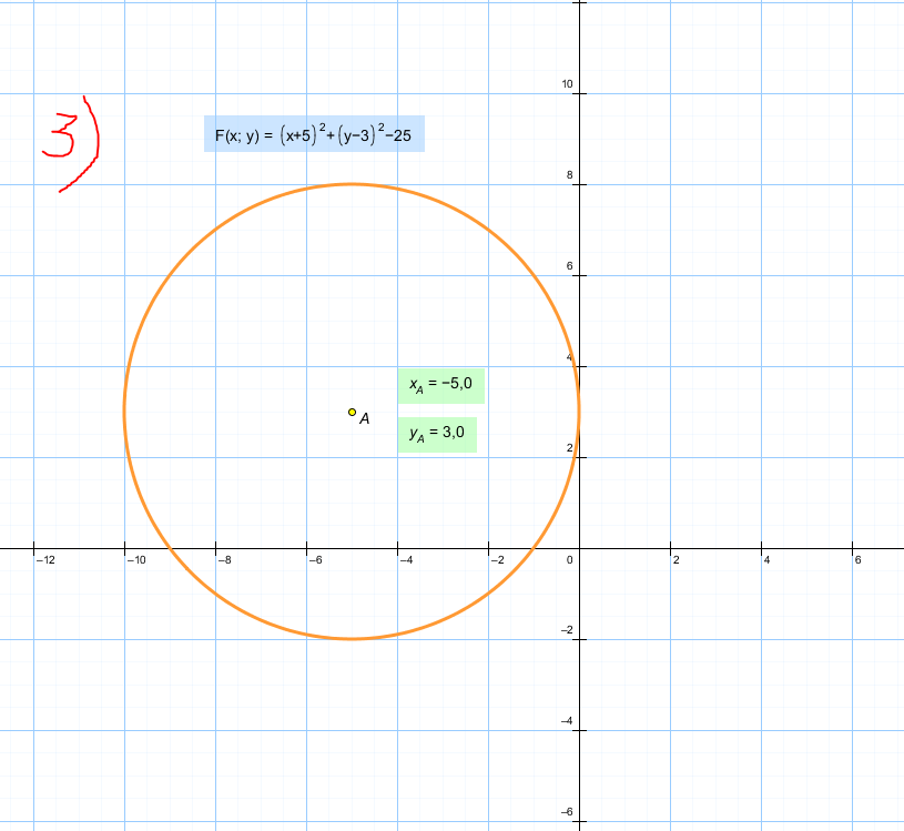 3) Радиус = 5; координаты центра (-5;3)