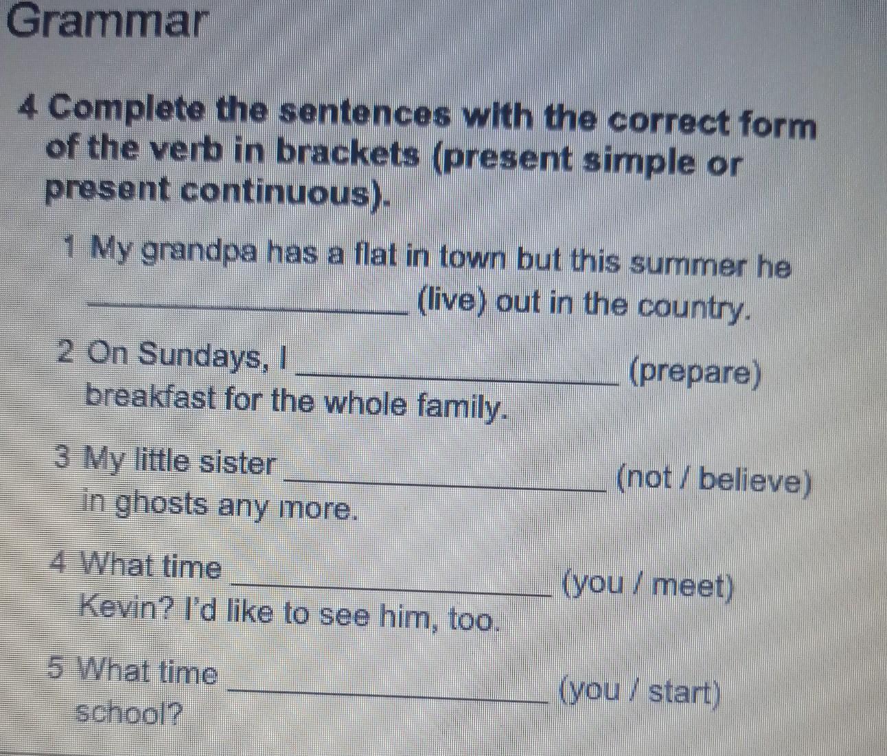4 Complete the sentences with the correct form of the verb in brackets (present simple or present continuous).