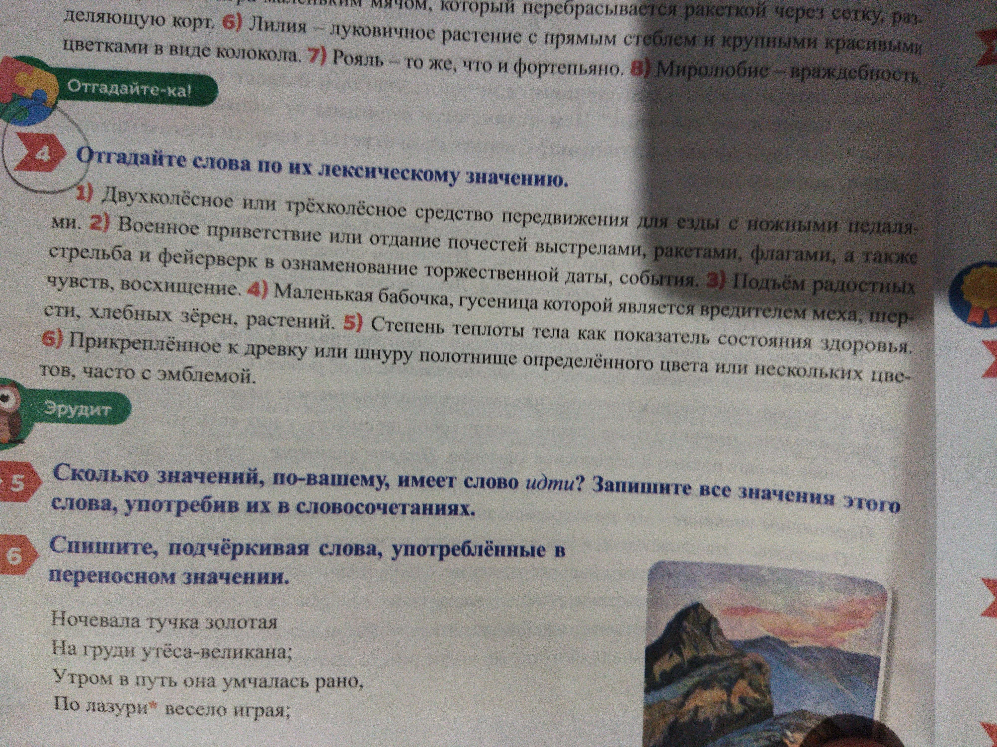 1) велосипед 2) салют3) восторг 4) моль 5) температура 6) флаг