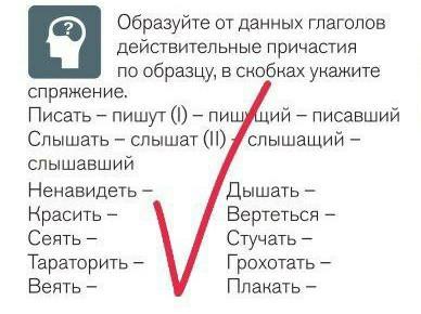 Образуйте от данных глаголов действительные причастия по образцу, в скобках укажите спряжение.