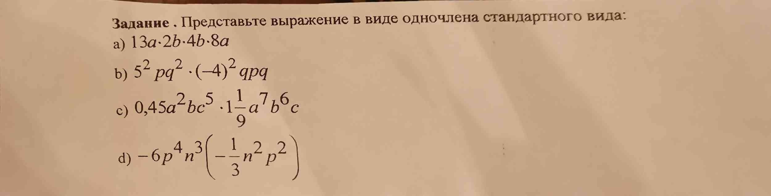 Задание . Представьте выражение в виде одночлена стандартного вида: