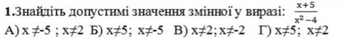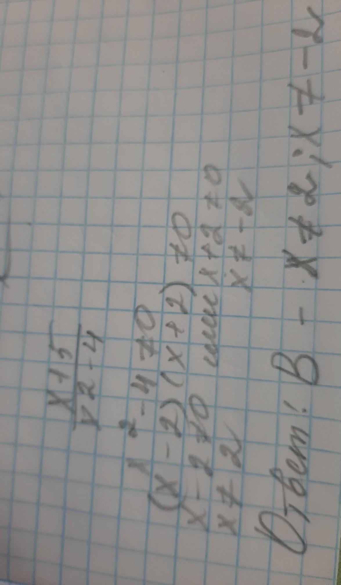 В)х не равен -2,и х не равен 2.Потому что при этих значениях знаменатель обращается в 0,а на 0 делить нельзя.