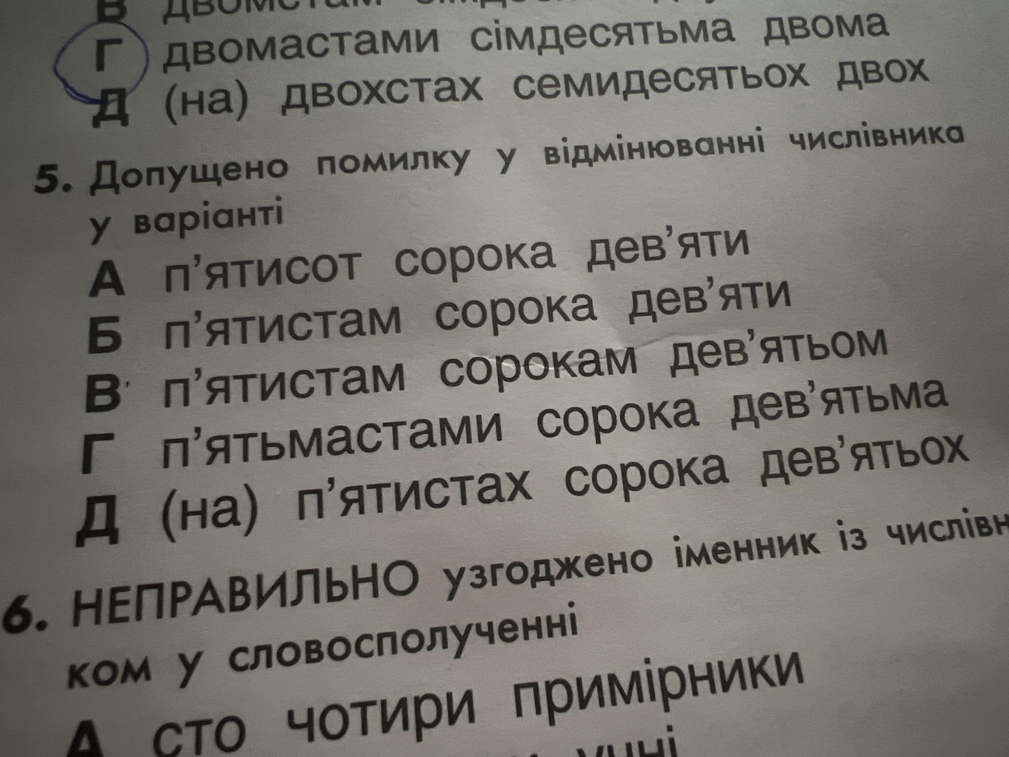 д) (на) п‘ятистах сорока дев‘ятьох