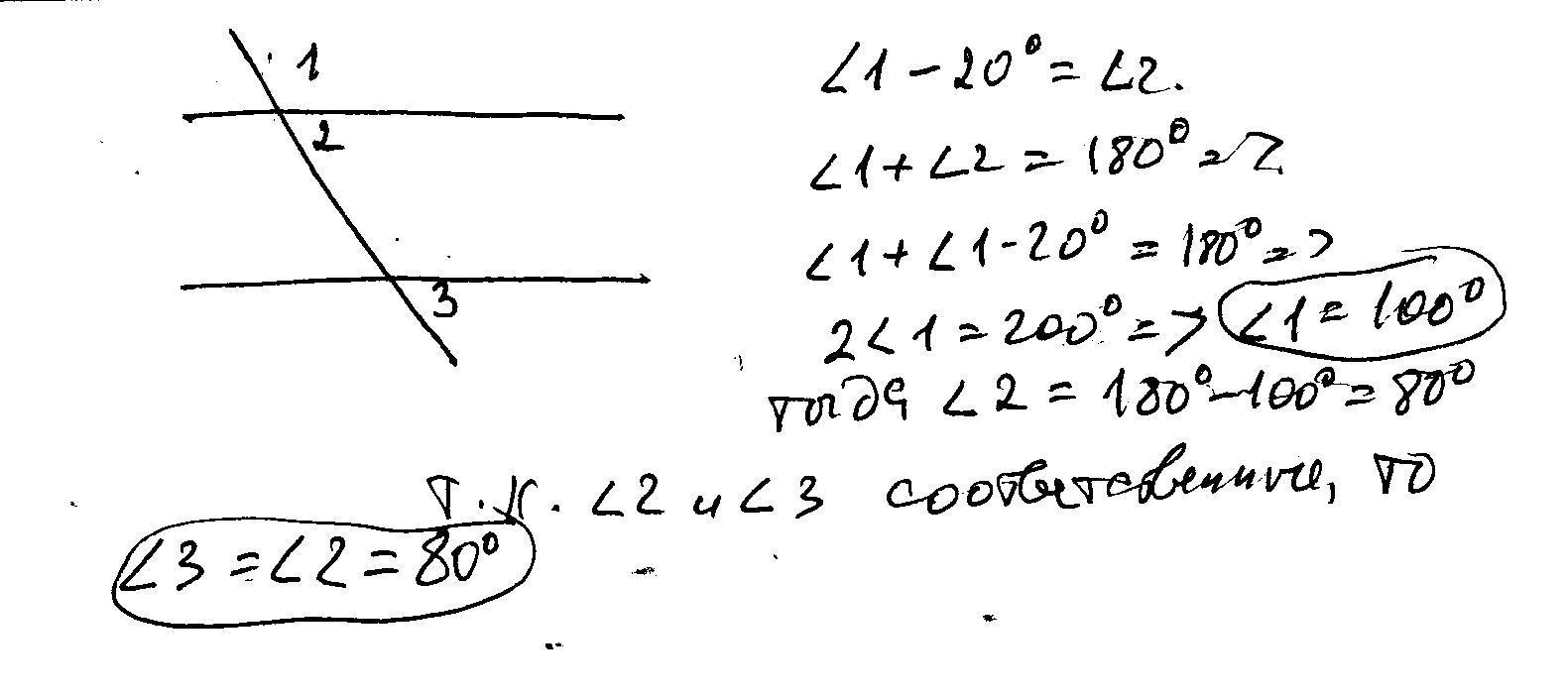 На рисунке а и b параллельны,угол 2 на 20 градусов меньше,чем угол 1.Найдите угол 3