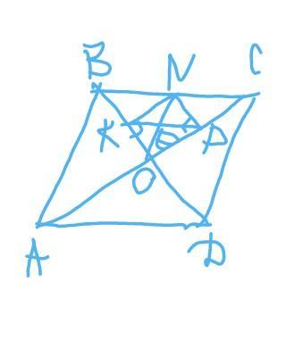 Из точки N, принадлежащей стороне ВС ромба AВCD, опущены перпендикуляры NP и NK соответственно на диагонали АС и BD. Найдите расстояние от точки N до точки пересечения диагоналей ромба, если PK=9 см.