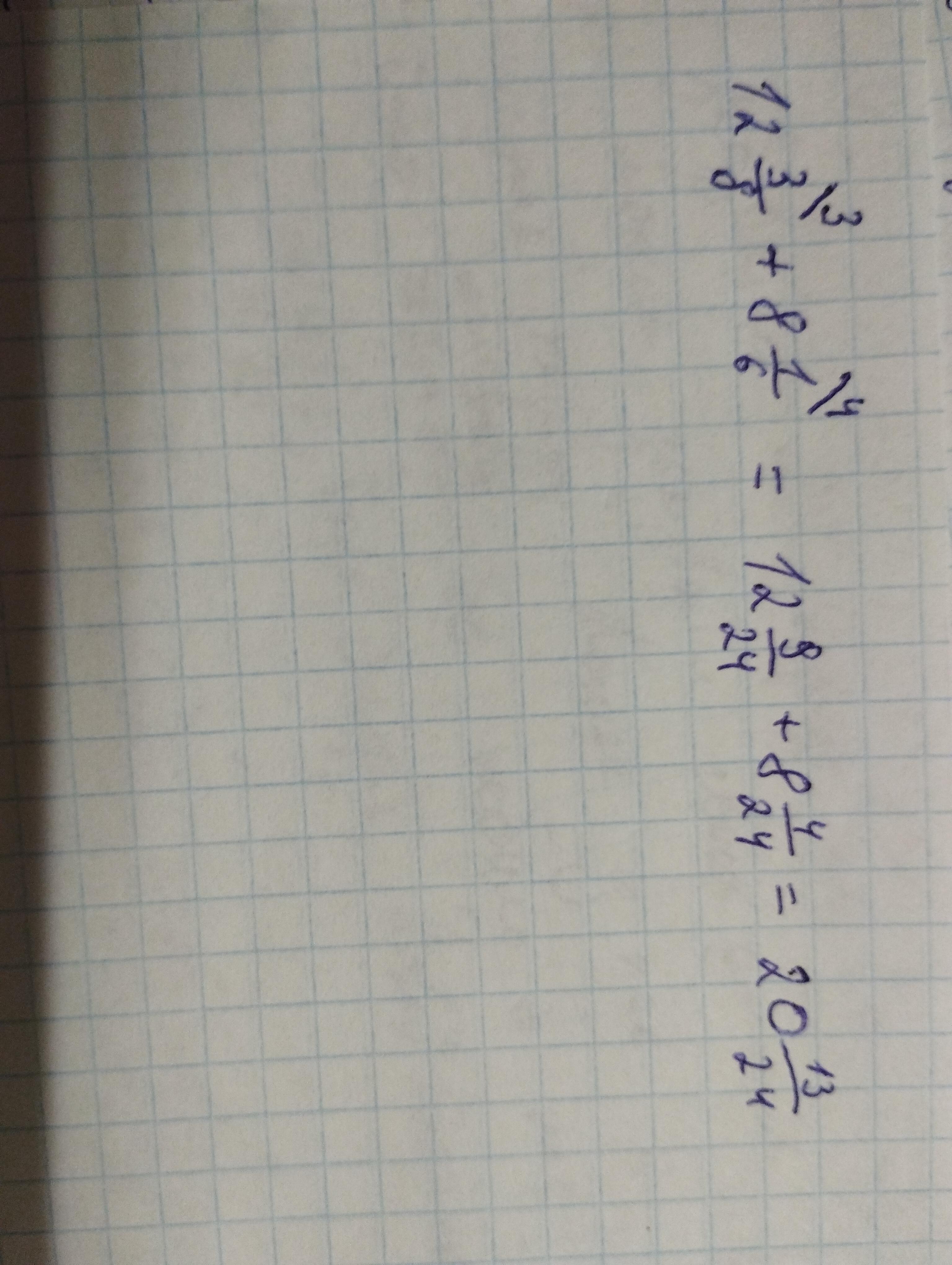 =(12+8)+(3/8+1/6)=20 + ( 3/8+1/6)= 20 + 13/24