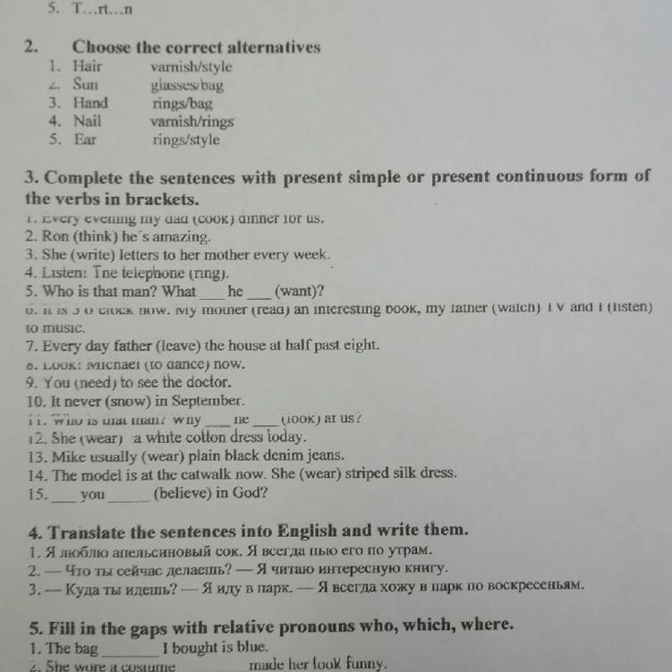 6)It is 5 o'clock now.My mother is reading an interesting book,my father is watching TV and i am listening to music.