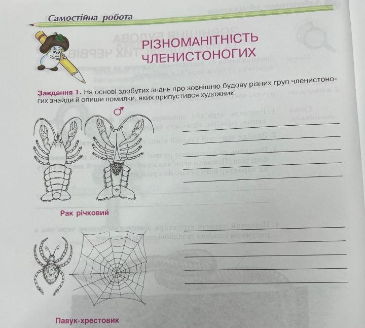 У павука має бути 4 пари ходильних ніг та 4 пари очей, відсутні вусики, а тіло має лише два відділи головогруди та черевце, також павук має ротові органи: дві пари видозмінених кінцівок ( хеліцери і ногощупальці)У павука-хрестовика є малюнок у вигляді хреста на спинній поверхні черевця та три пари павутинних бородавок розташованих біля заднього кінця черевця.