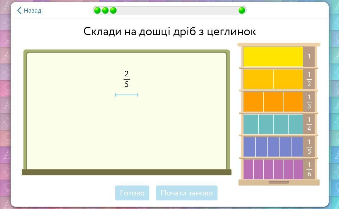 выставить сверху 2 кубика 1/2 а снизу пять кубиков 1/5