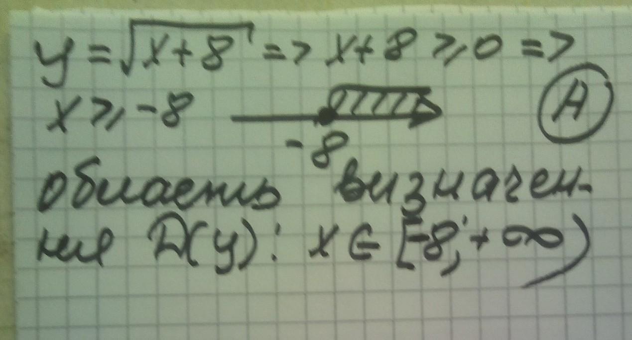 А). х є [-8; + ∞); Б). х є (-∞; 8); В). х є [8; + ∞); Г). х є (8; + ∞).