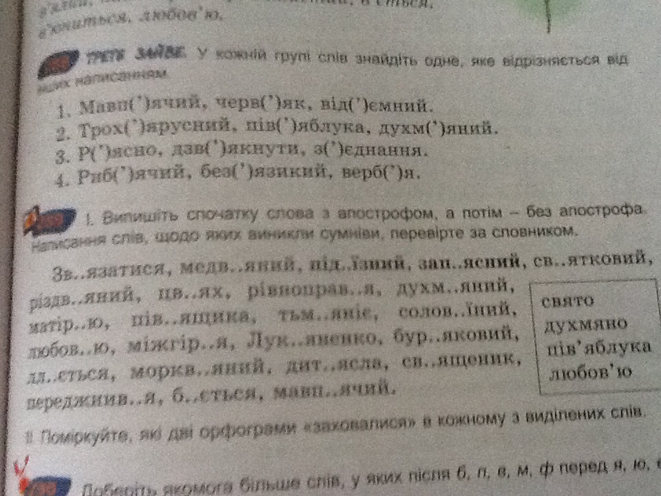 помогите решить задача :розподилить слова с апострофом та без( у стопчи-ка)зв...язатися Медв...яний. Пид...издний. Зап....ясний. Св. Ятковий Різдв. Яний