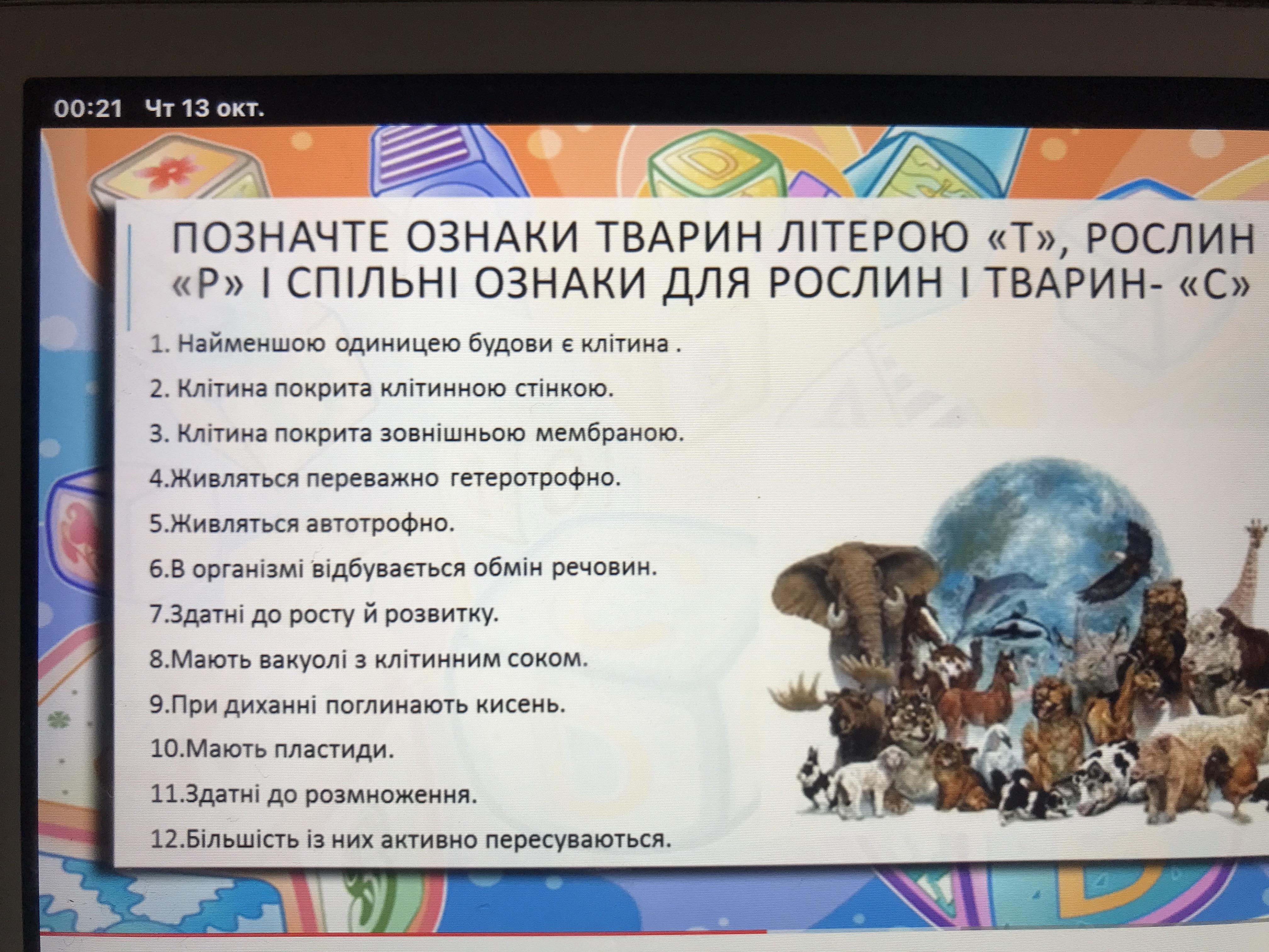 Відповіді на питання( відповідаєте тількі( літера Т тварини, літера Р рослини, літера С для тварин і рослин разом)