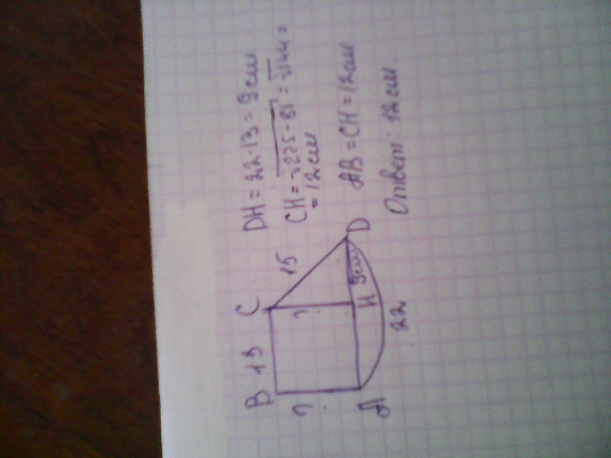 В прямоугольной трапеции основания равны 13 и 22, а большая боковая сторона равна 15. Найдите меньшую боковую сторону.