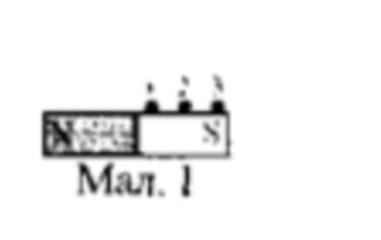 Три однакові сталеві кульки лежать на горизонтально розміщеному магнітові (мал. 1). На яку кульку з боку магніту діє найменша сила?