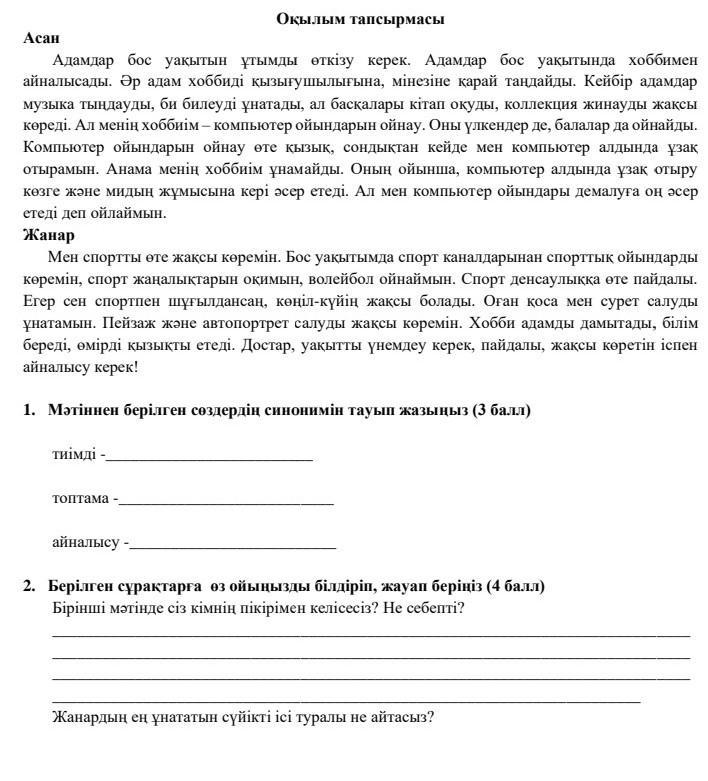 Жанармен келісемін. Себебі ол денсаулығына пайдалы іспен айналысады. Ал Асан болса өзінің денсаулығына зиян хоббимен айнасуда.