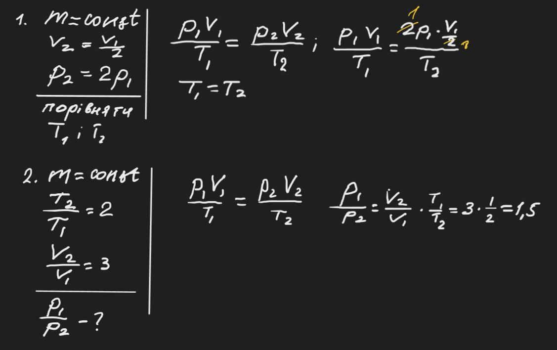 2.абсолютна температура даної маси газу збільшилася вдвічі, а його об'єм збільшився при цьому в три рази. чи змінився при цьому тиск газу? якщо так, то в скільки разів?