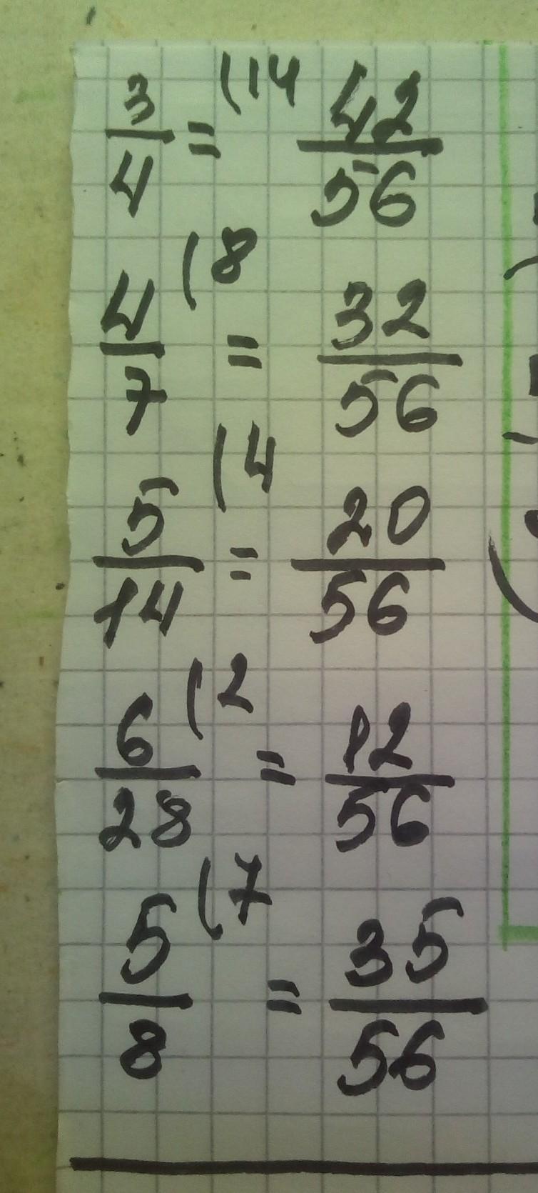 знаменником 56. 1)3/4, 2)4/7, 3)5/14, 4)6/28, 5)5/8 пж срочнооо