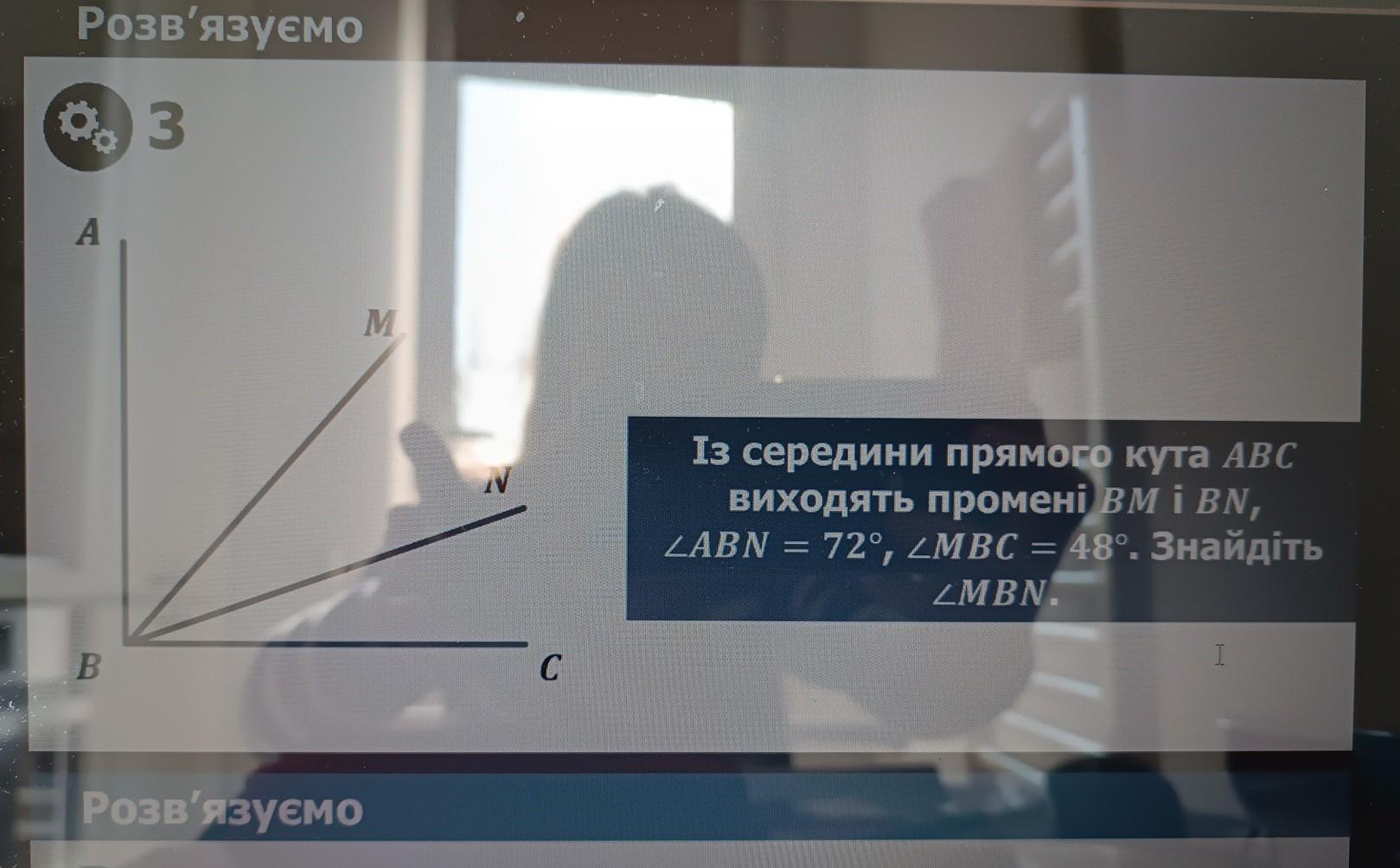 СРОЧНОО! Даю 10 балів! Із середини прямого кута АВС виходять промені ВМ і ВN, кут АВN = 72 градусів, кут МВС =48 градусів. Знайдіть кут МВN
