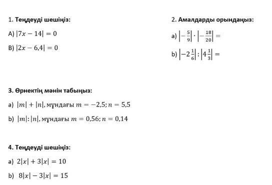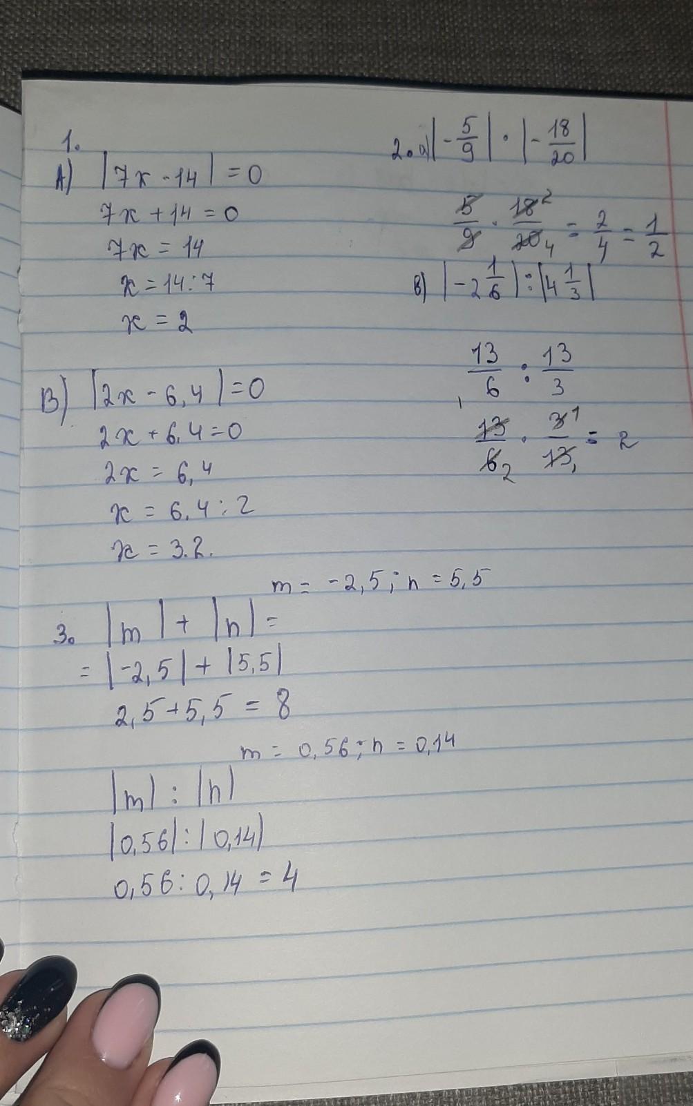 1.а) 7x - 14 =0 x = 2 1.в)х =3.2