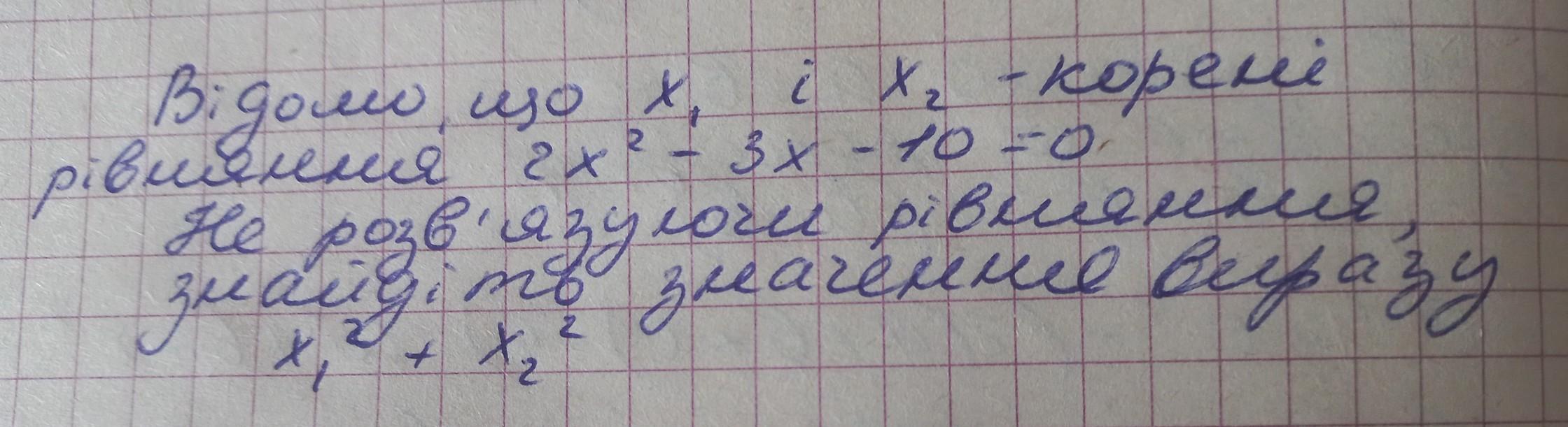 Значит, х₁² + х₂² = (х₁ + х₂)² - 2х₁ · х₂ = 5² - 2 ·(-1,5) = 25 + 3 = 28.