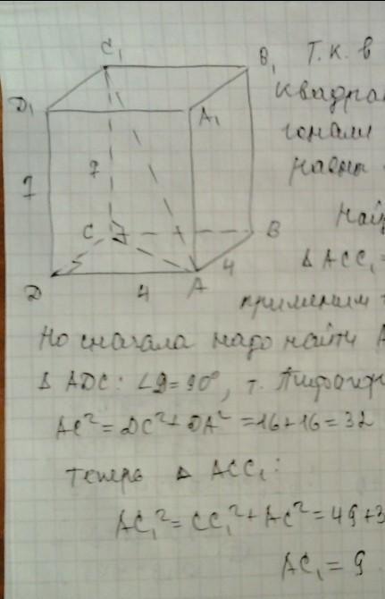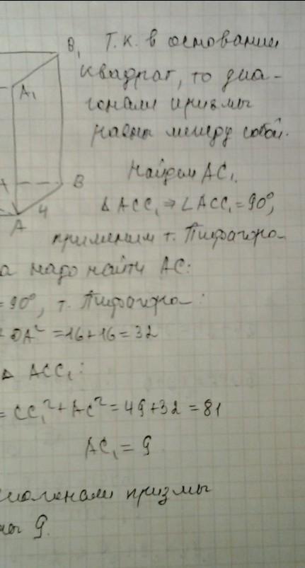 Основою прямої призми є квадрат зі стороною 2√2см. Висота призми дорівнює 3см. Знайти: