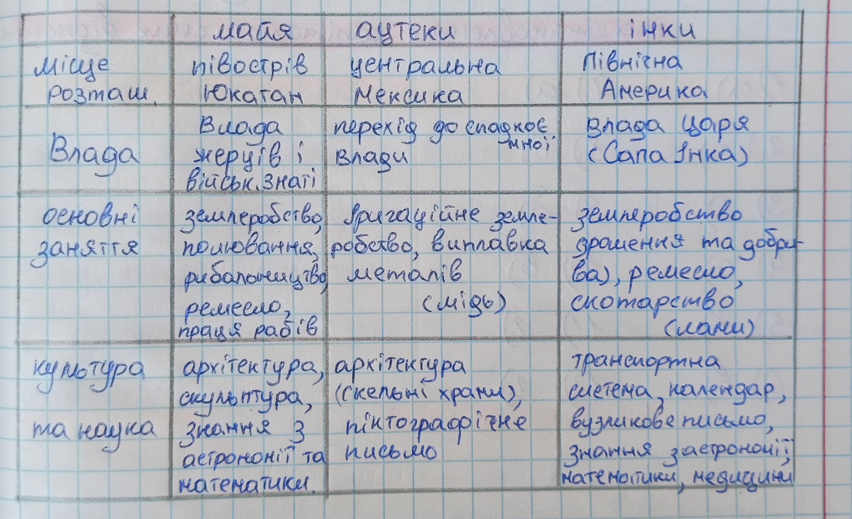 «Цивілізації доколумбової Америки ( майя, інки, ацтеки)» заповнити таблицю «Народи доколумбової Америки». Народи Основні Територія ДОКОЛУМБОВОЇ Проживання заняття Америки МАЙЯ АЦТЕКИ ІНКИ Держава й суспільні відносини Досягнення, вiдкриття
