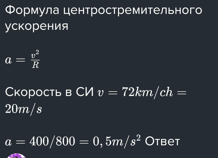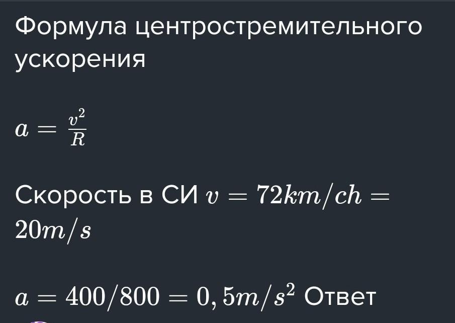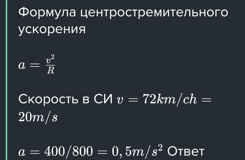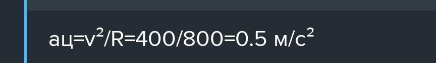 поiзд рухается по заокругленню радіусом 800м з доцентровим прискоренням 0.5м/c яка швидкiсть поiзда?