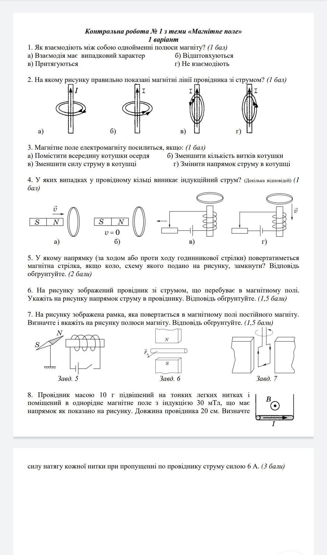 Контрольна робота з теми "Магнітне поле"