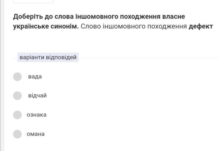 Доберіть до слова іншомовного походження власне українське синонім. Слово іншомовного походження дефект
