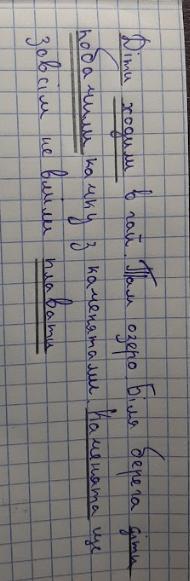 Підкресли підмет і присудок. Діти ходили в гай . Там озеро. Біля берега діти побачили качку з каченятами . Каченята ще зовсім не вміли плавати.