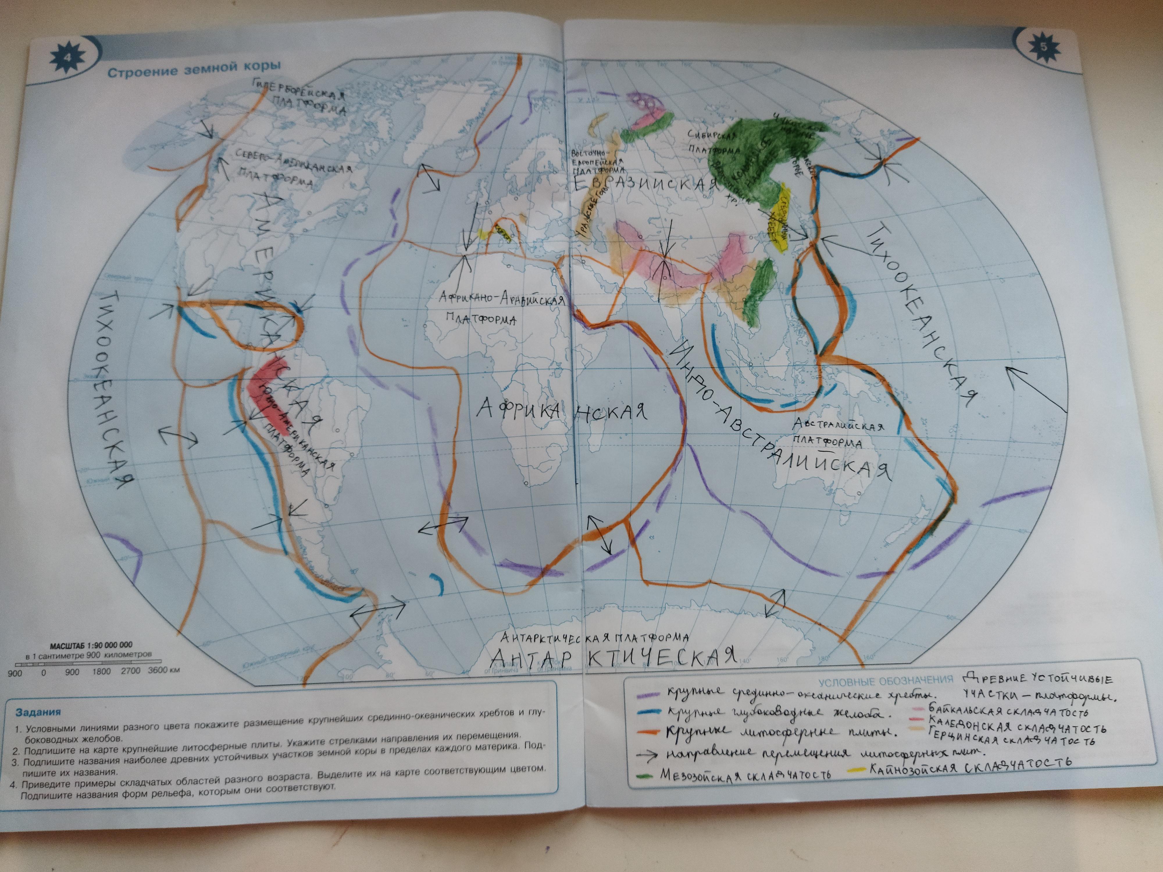2. Подпишите на карте крупнейшие литосферные плиты. Укажите стрелками направления их перемещения.