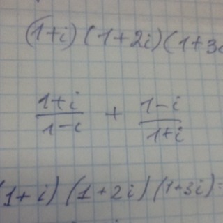 1+i/1-i + 1-i/1+i=(1+i)(1+I)+(1-i)(1-i) / (1-i)(1+i)=2i-2i /2=0