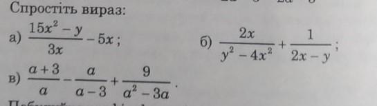 1) 15x²-y/3x-5x=15x²-y-15x²/3x=-y/3x