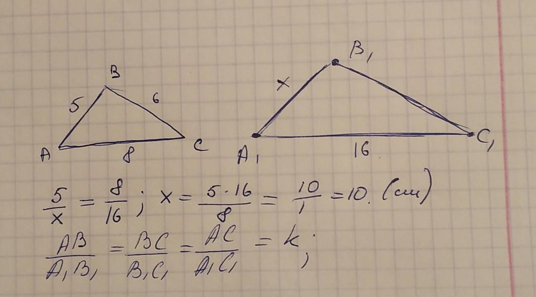 Дан треугольник со сторонами 5 см, 6 см, 8 см. Самая длинная сторона треугольника, подобного данному треугольнику, равна 16 см.