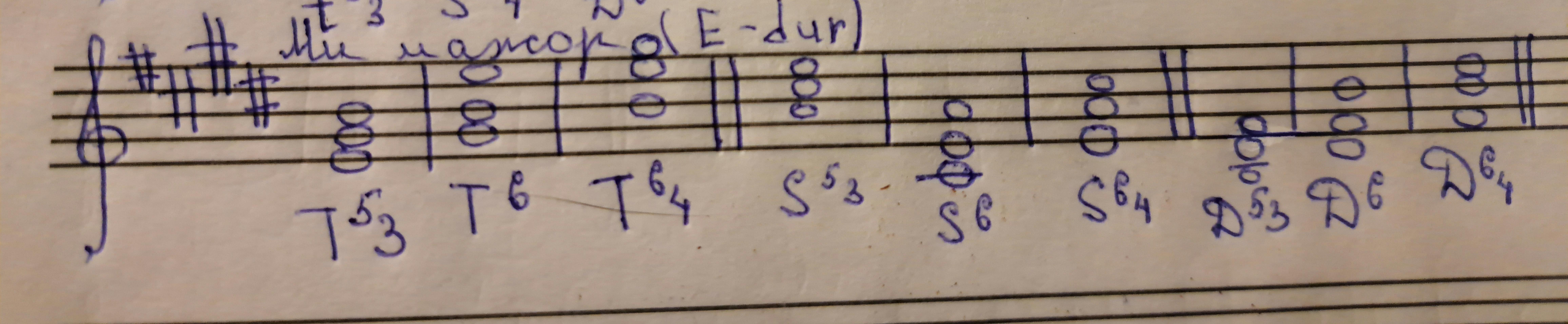 Главные трезвучия T53, S53, D53, а также их обращения.
