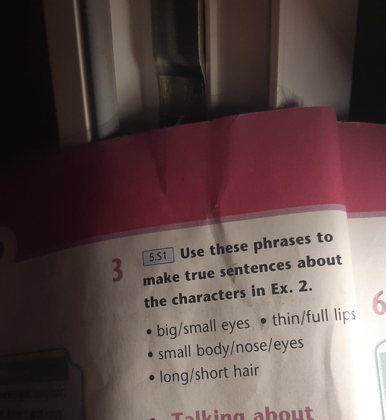 Объяснение:надо составить предложения, используя эти фразы для описания персонажей из упражнения 2. В предложениях обязательно должны быть использованы эти