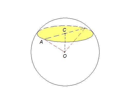 СА - радиус сечения, ОА - радиус шара, искомый.
