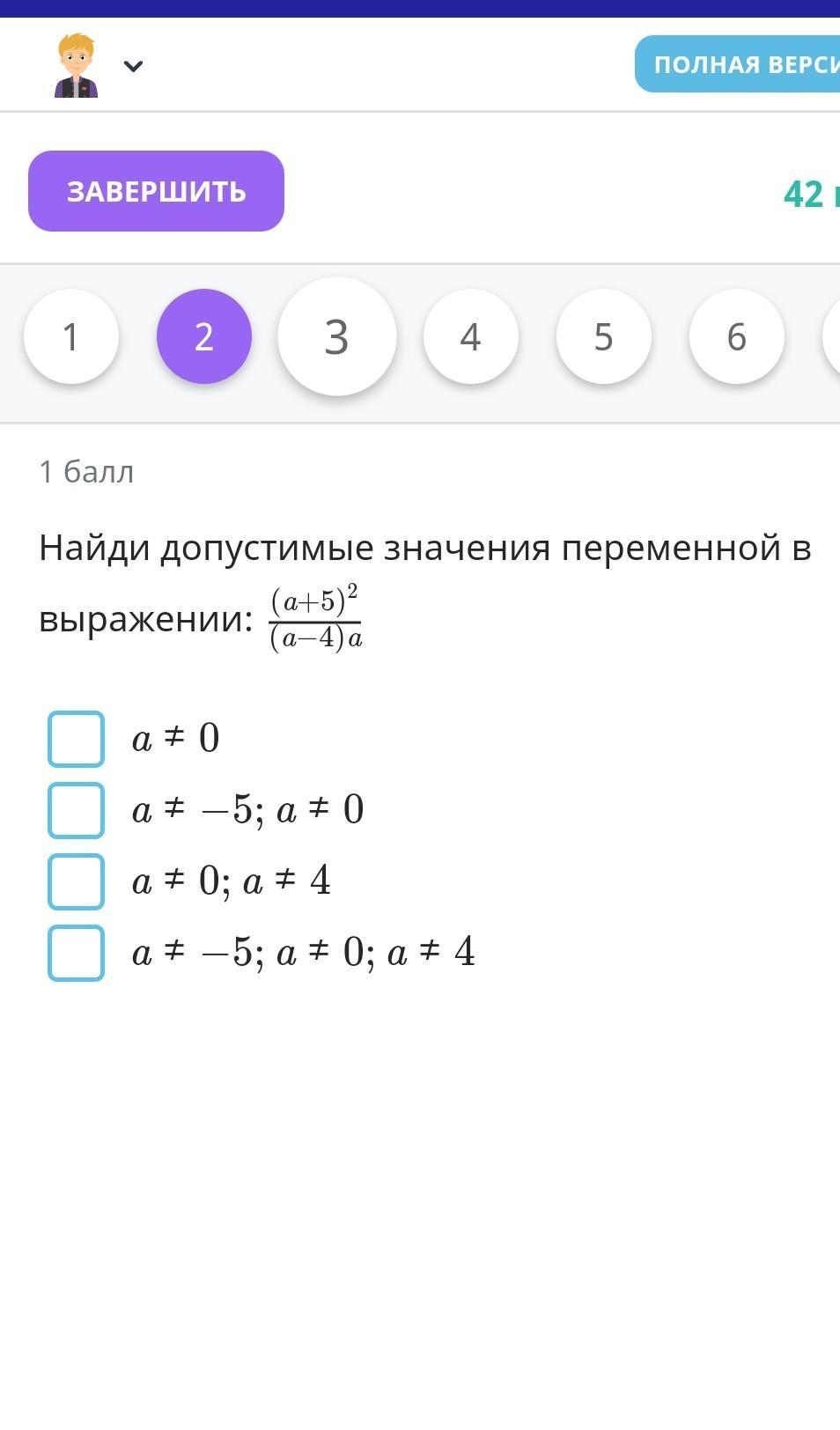 а не равно 0 и а не равно 4 вроде бы