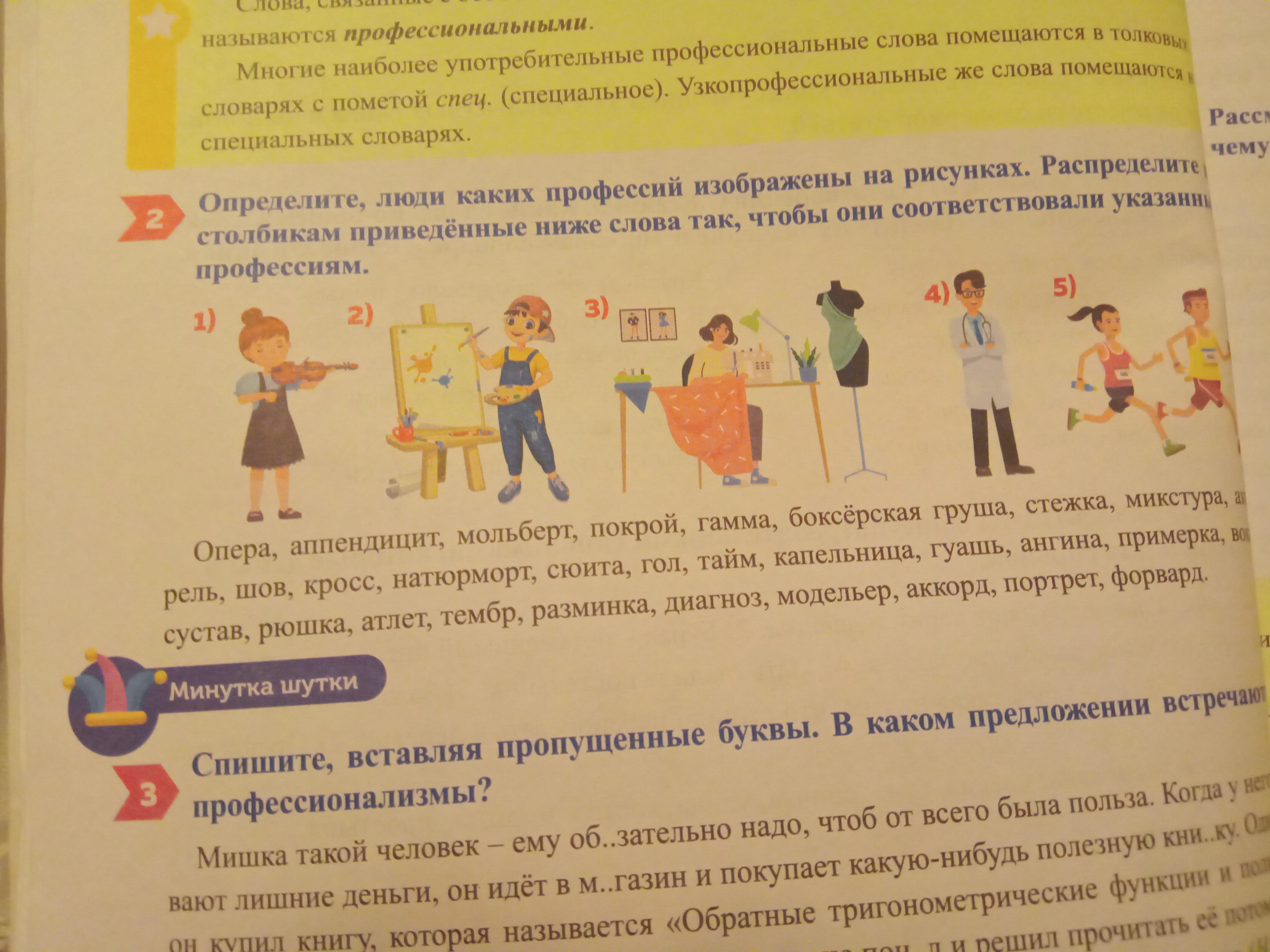 определите люди каких профессий изображены на рисунках. Распределите по столбикам приведённые ниже слова так, чтобы они соответствовали указанным профессиям.